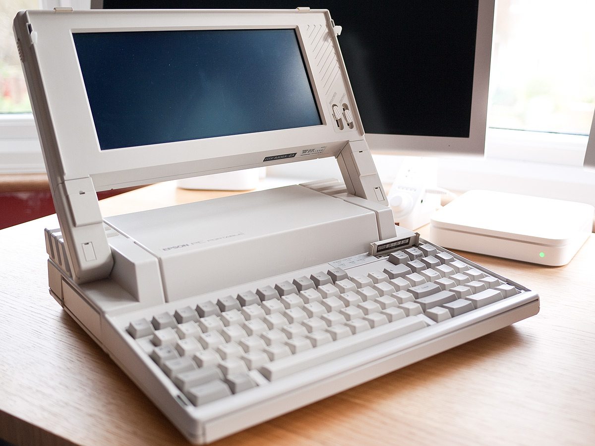 Their first laptop computer, released in 1989, ran an NEC V30 (about 10-30% faster than the Intel 8086 and was 100% compatible), 640 KB RAM, 21 MB RLL hard disk, two "option" slots (8-bit ISA), and monochrome CGA graphics with RGB output for an external monitor.