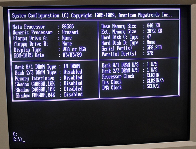 OK, let's hit <ESC> and dig around in the 386 BIOS.