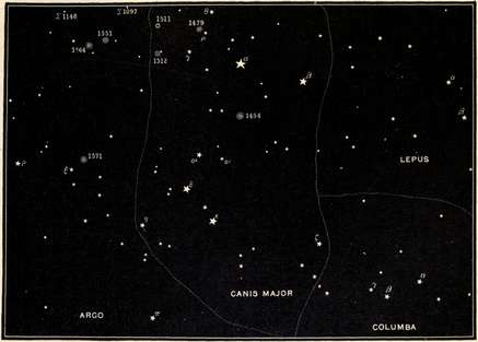Not only is Orion the most brilliant of all constellations to the casual star-gazer, but it contains the richest mines that the delver for telescopic treasures can anywhere discover. We could not have made a better beginning, for here within a space of a few square degrees we have a wonderful variety of double stars and multiple [Pg 20] stars, so close and delicate as to test the powers of the best telescopes, besides a profusion of star-clusters and nebulæ, including one of the supreme marvels of space, the Great Nebula in the Sword.