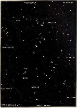 | Lyra and its brilliant Vega, Cygnus, Vulpecula, Aquarius, Equuleus, Pegasus, Cetus, and Eridanus. | |