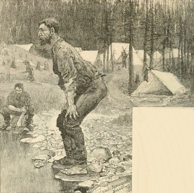 The sun blazed down on the great camp that afternoon and glorified the place so that it looked like a miniature Switzerland of snowy peaks. But it was hot, and blankets were stretched from the tent tops, and the women sat under them to catch the air and escape the heat. The salaried native policeman of the reserve, wearing a white stove-pipe hat with feathers, and a ridiculous blue coat, and Heaven alone knows what other absurdities, rode around, boasting of deeds he never performed, while a white cur made him all the more ridiculous by chasing him and yelping at his horse's tail.