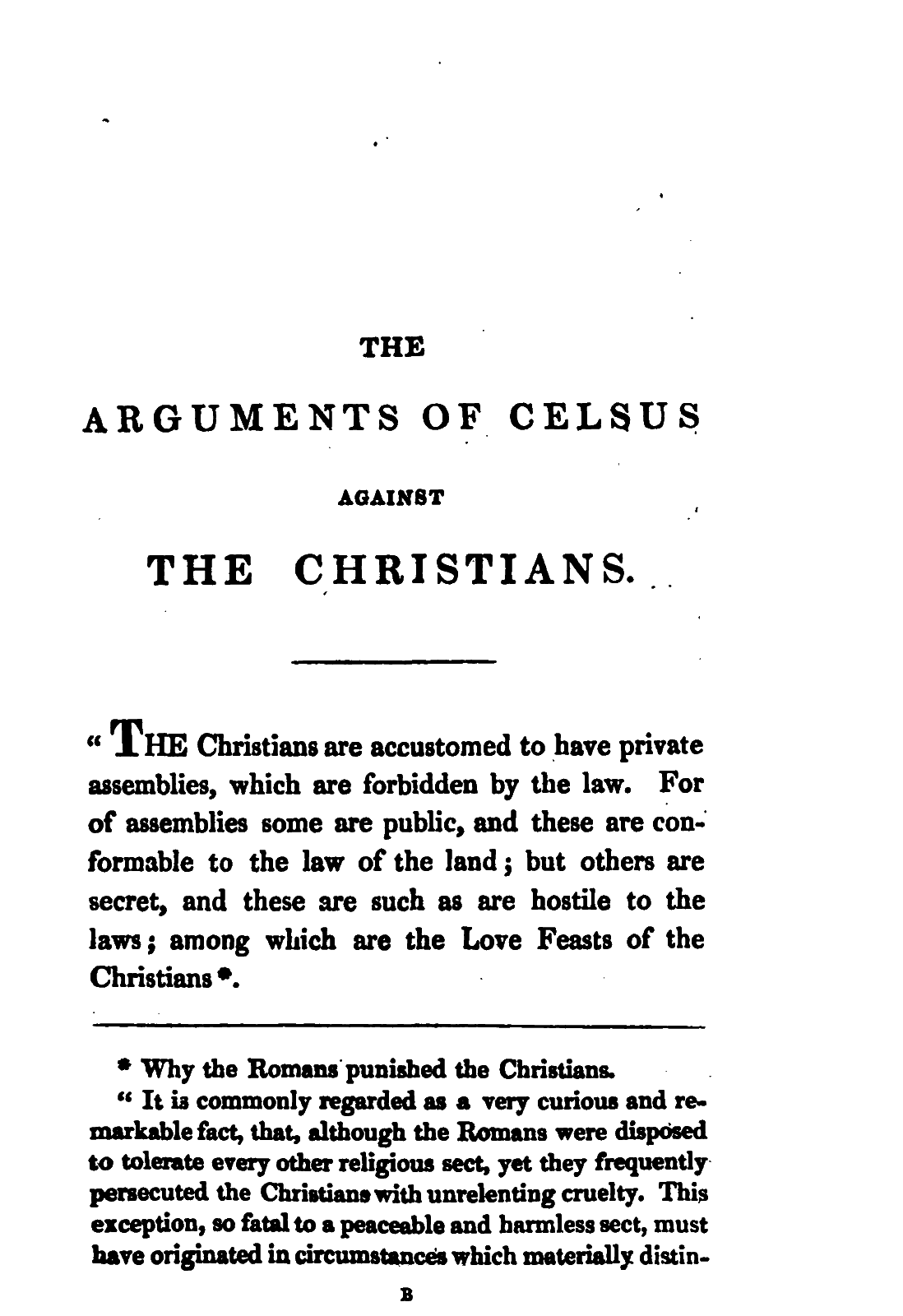 THE ARGUMENTS OF CELSUS AGAINST THE CHRISTIANS