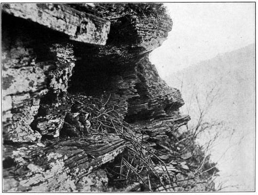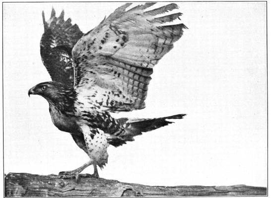 If the hawk had been one of the swift Accipiters, such as the gray goshawk or the Cooper’s hawk, or any of the falcons, no crow would have ventured to take any liberties. One of my friends, who collects bird’s eggs instead of bird-notes, was once attempting feloniously to break and enter the home of a duck-hawk which was highly regarded in the community—about two hundred feet highly in fact. As my friend was swinging back and forth on a rope in front of the perpendicular cliff, said duck-hawk dashed at him at the rate of some ninety miles per hour. Being scared off by a blank cartridge, the enraged falcon towered. A passing crow flapping through the air made a peck at the hawk as it shot past. That was one of the last and most unfortunate acts in that crow’s whole life. The duck-hawk was fairly aching with the desire to attack someone or something which was not protected by thunder and lightning. With one flash of its wings it shot under that misguided crow, and, turning on its back in mid-air, slashed it with six talons like sharpened steel. The crow dropped, a dead mass of black and blood, to the brow of the cliff below.