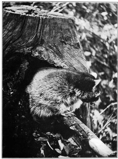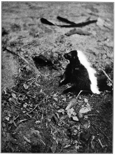 It is not necessary to go to the forest for adventures: they lie in wait for us at our very doors. My home is in a built-up suburb of a large city, apparently hopelessly civilized. The other morning I was out early for some before-breakfast chopping, the best of all setting-up exercises. As I turned the corner of the garage, I suddenly came face to face with a black-and-white animal with a pointed nose, a bushy tail, and an air of justified confidence. I realized that I was on the brink of a meeting which demanded courage but not rashness. “Be brave, be brave, but not too brave,” should always be the motto of the man who meets the skunk. From my past experience, however, I knew that the skunk is a good sportsman. Unless rushed, he always gives three warnings before he proceeds to extremities.
