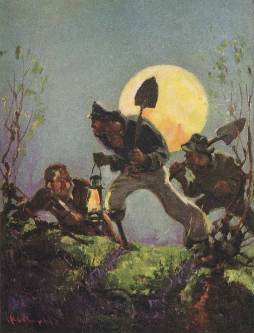 “Bill succeeded in his robbery after the second attempt, but, instead of fleeing he remained on the scene and tried, by pretending friendship with Hiram, to throw suspicion from himself. Rod, knowing he had been forestalled, hung around trying to find some way of coming at the treasure. He even dug for it. But after Bill had the map, or, rather, the cipher, he couldn’t do anything without the key, which Hiram had but didn’t know it. As for the hook-armed man, there must have been some secret between him and Rod which we don’t know anything about. It may have had nothing to do with this case.”