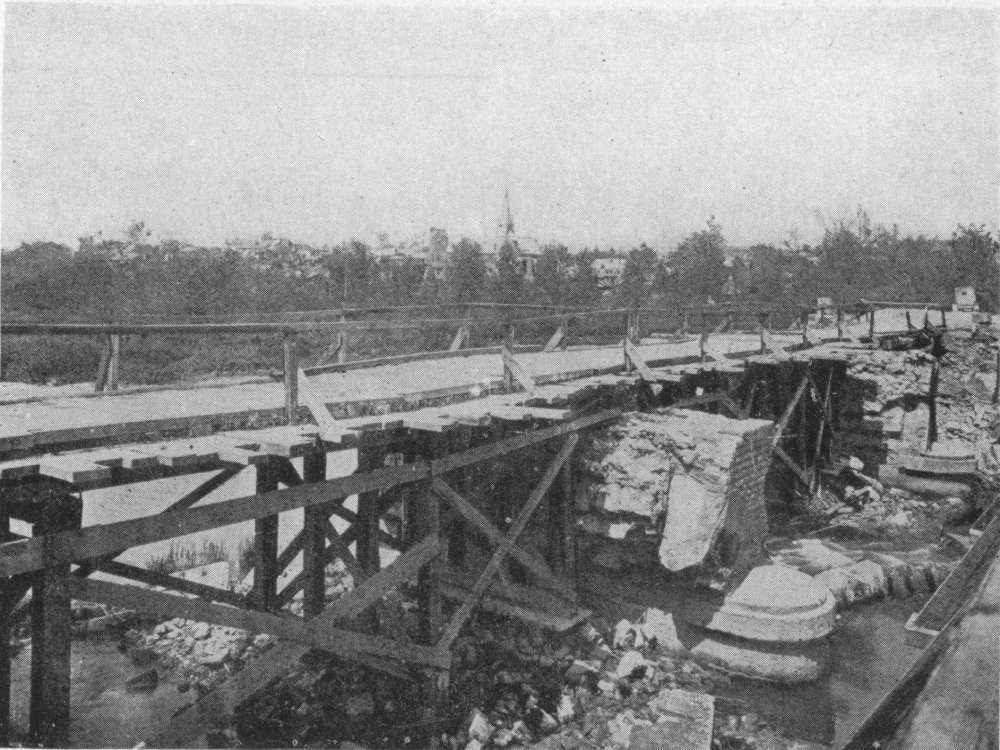 On the 26th, the Crown Prince renewed and developed the attack, which, on the 29th, extended from the Four-de-Paris to about two miles beyond the Binarville-Vienne-le-Château road. After a three days’ bombardment, he hurled at least 40,000 men into action, three times in succession. Against the salient from Bagatelle to the north of Four-de-Paris alone, on a front of about five miles, he launched two divisions. Thanks to a hail of shells and gas bombs, the enemy advanced and, through the corridor of the Biesme, came within five miles of their objective, the railway station of Les Islettes. The fire of the 75’s, however, barred the road, and the French reserves subsequently counter-attacked and retook the lost ground covered with enemy dead.