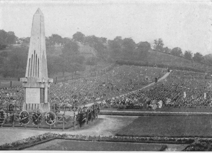For almost a year the struggle on this line continued with unabated desperateness. It is impossible to enumerate here all the battles fought almost daily in the sectors of Fontaine-aux-Charmes, Bagatelle, Marie-Thérèse, Fontaine-Madame, St. Hubert, Four-de-Paris, Les Meurissons, Bolante Wood, Courte-Chausse and Haute-Chevauchée. The most important are referred to later, in the Itinerary. On the whole, the French troops, with whom the Garibaldian Regiment co-operated for a short time, made some progress and inflicted bitter defeats on the enemy. To the east, in the Valley of the Aire, though they failed against Boureuilles, they succeeded in March, after numerous attacks, in taking Vauquois.