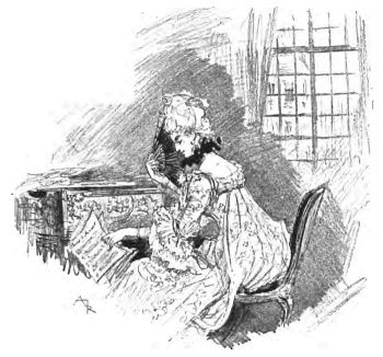 Sylvie a fait sans doute un peu de toilette pour le souper, car M. de Coudray, revenu près d'elle, se penche au-dessus de son fauteuil et lui souligne ces vers de l'Almanach: