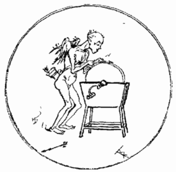 M. de Coudray quitte la charmille à son tour, laissant bien en vue sur la table l'Almanach des Muses ouvert à la page 127, où se trouve le tendre distique suivant: