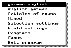 A comprehensive range of functions and options can be selected from a central menu (see Screen 3), unlike the usual System Manager compliant programs. As I have DBLearn configured to learn German, my menu options are: