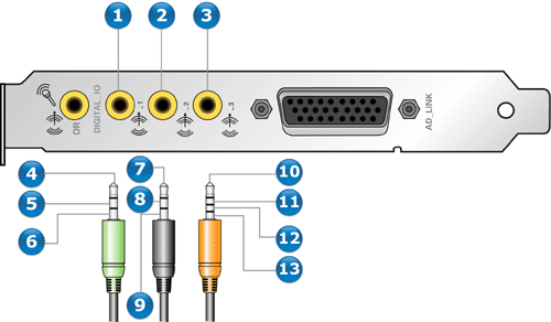 Darstellung Stereobuchse und vierpolige Buchse: Sound Blaster X-Fi-Serie – Erste Schritte