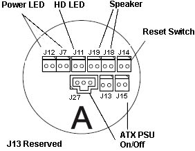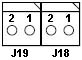 J19, J18 Speaker The speaker connector consists of two 2-pin connectors. The connectors are used to drive a speaker or a speaker LED (in noisy environments). A standard 8-ohm speaker can be connected to give normal system audio outputs. The two connectors act as a single header and support the 2-pin speaker connector in IBM systems or the industry-standard 4-pin connector. The 2-pin speaker cable can be connected to either J19 or J18. The 4-pin cable can be connected across both J18 and J19 (the two outer-most pins are used). ![]()