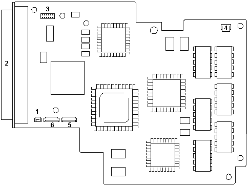 1. LCD Interface Connector 2. System-Expansion Port (120-pin) 3. Keyboard-Control Card Connector 4. Battery Presence Switch 5. LCD Interface Connector 6. LCD Interface Connector 8551 Planar,