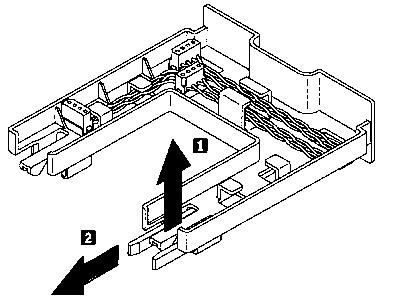 Pull up on the tab (1) on the back of the tray and pull out the rail