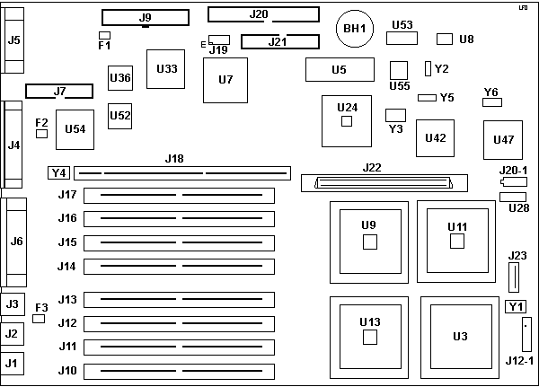 Memory SIMMs must be installed in groups of fours, J10-J13 and J14-J17.
