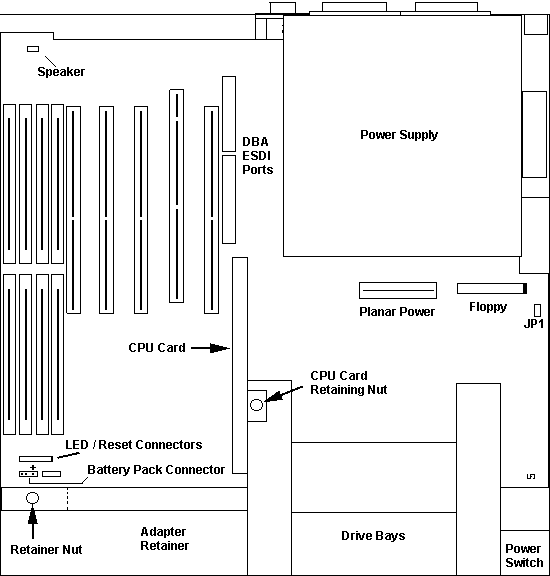 the DBA ESDI drive (leave the tape connector headers in the board sockets).