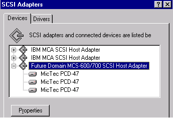 Use a common FD MCS-700/Patriot , Buslogic BT-646, or Adaptec AHA-1640. These will not show up under Set and View SCSI Devices, so you can insert and eject devices without having to reboot. Stuff I have Used So Far: