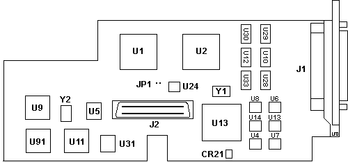 What is the purpose of the light on top of the ARTIC card? The light on the ARTIC card indicates the status of the ARTIC POST routines. The light normally comes on during POST (power on or reset), and goes off after successful completion of POST. If the light remains on, an error has been detected and an error code will be in task 0's secondary status buffer. A flashing light indicates a memory error on the card (since the error code can not be reported via memory). One other difference in reset between Micro Channel and PCI systems is that Ctrl+Alt+Del does not reset adapters in PCI systems. J3 Clock Signal on ARTIC960 Co-Processor Platform (Micro Channel) ![]() The ARTIC960 supplies a clock signal (25MHz) to the AIB. This signal must be terminated at all times. Normally, the AIB circuitry terminates this signal. The ARTIC960 has a three-pin jumper (J3), which provides an on-card resistance-capacitance (RC) termination for the clock. If you do not have an AIB installed, J3 is jumpered 2-3 to terminate the clock signal on the ARTIC960. When an AIB is installed, J3 is jumpered 1-2, which is a "no-connect" position for the on-card termination circuitry, and allows the termination to take place using the AIB circuitry. NOTE: On this ARTIC960 with an installed AIB, J3 was jumpered for 3-2, which is supposedly for Termination. 6 Port V.36 AIB FRU 11H3795 (52G0985?) ![]()