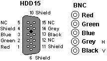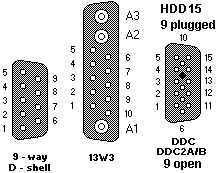 Signal Name    DB9   13W3  HDD15   DDC  DDC2A/B